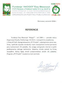 Poniżej prezentujemy wybrane referencje, opinie oraz podziękowania od naszych partnerów oraz użytkowników programu PIT Projekt: